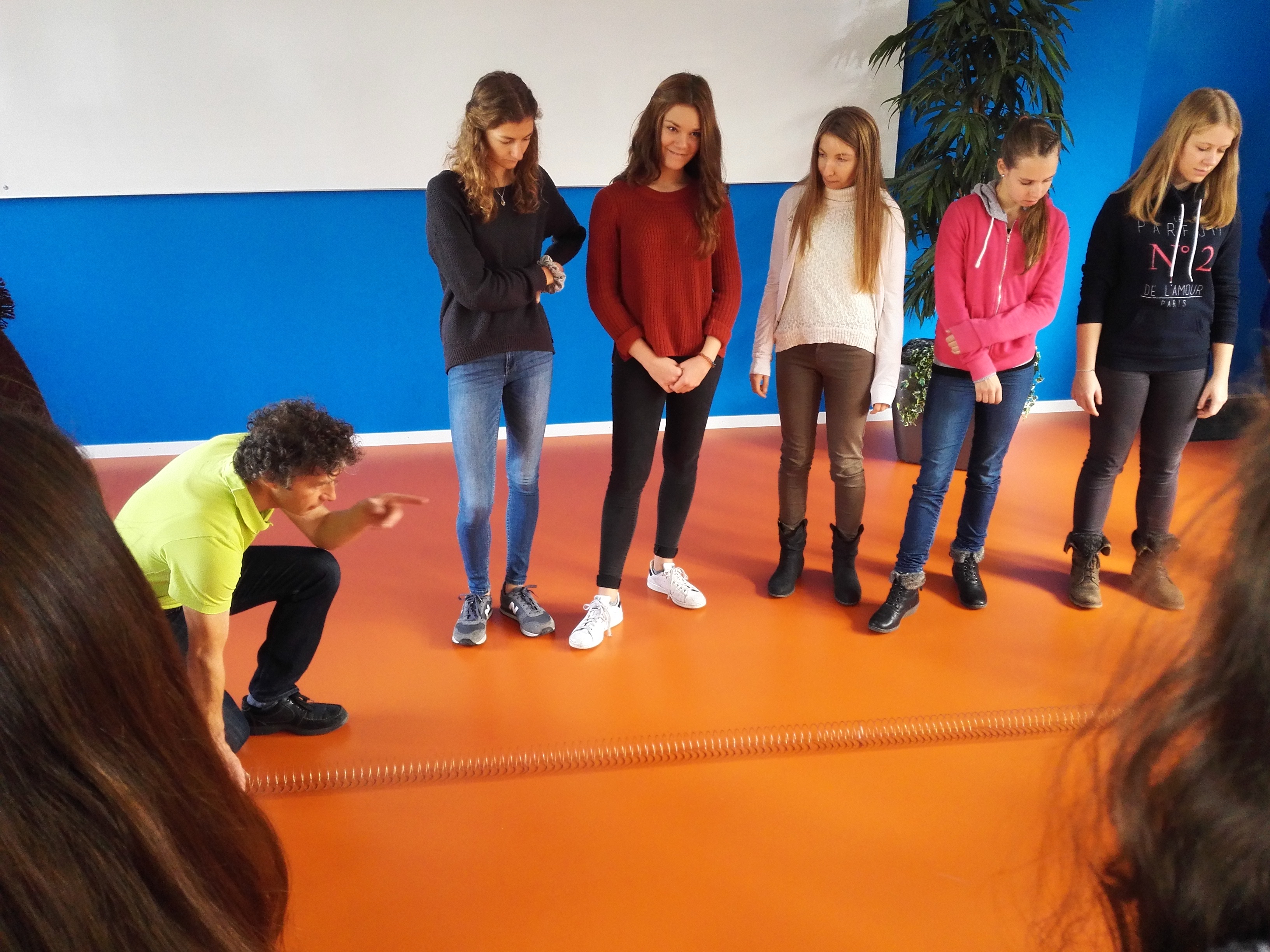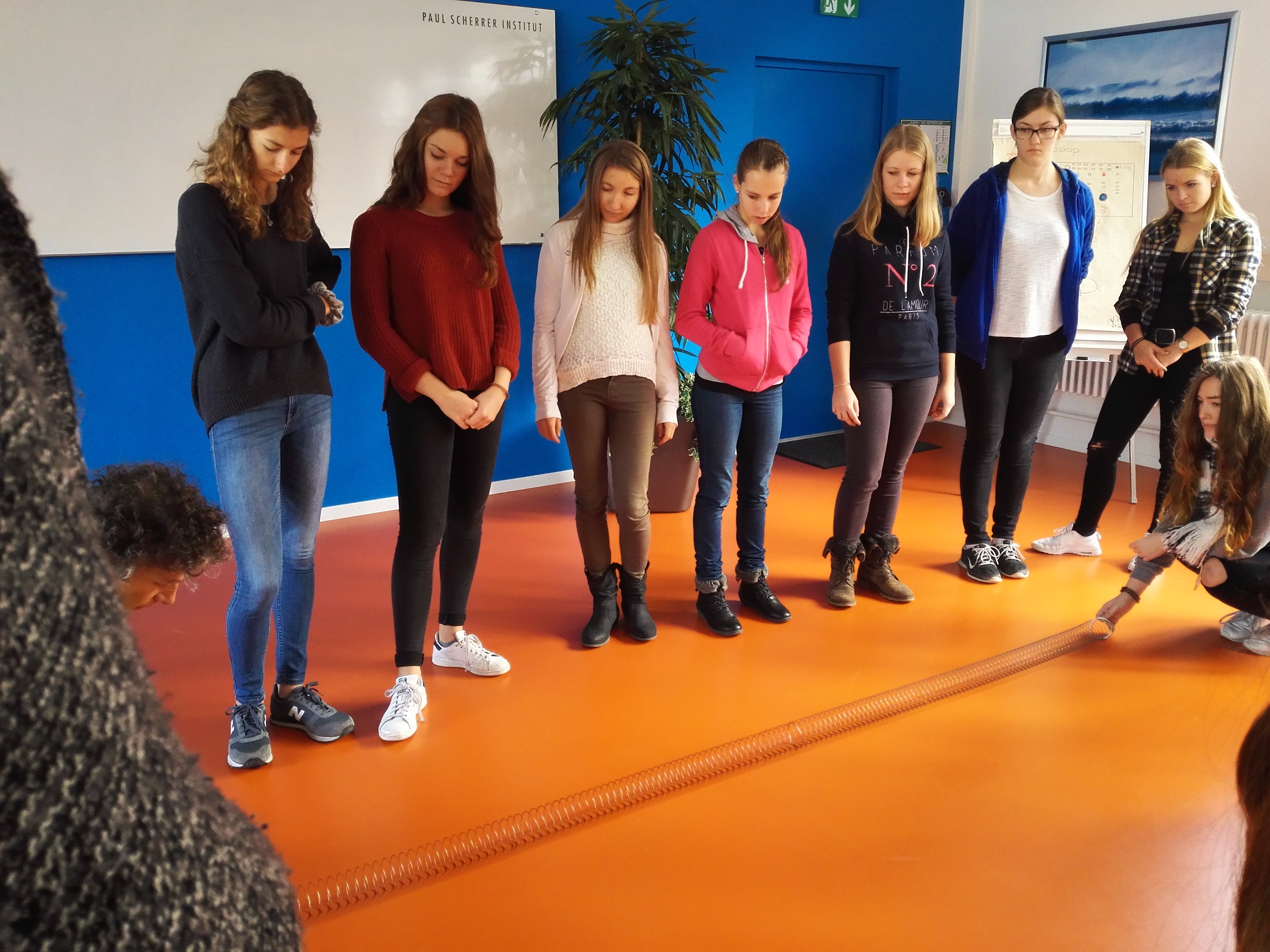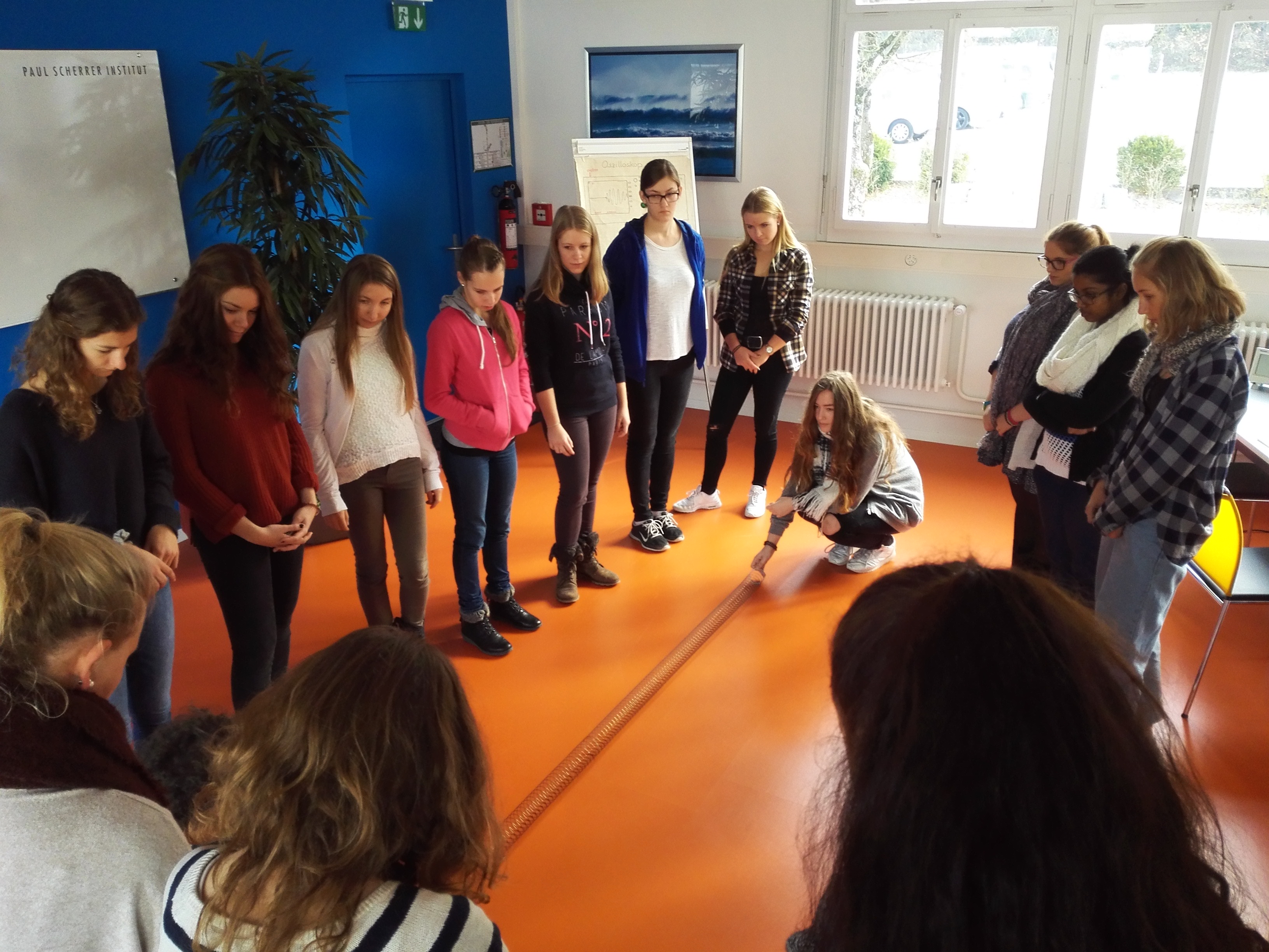 Im Fach Physik konnte die Klasse G2f in der Blocktagewoche 2 ans Paul-Scherrer-Institut (PSI) in Villingen reisen. Der Besuch im berühmten Forschungsinstitut ermöglichte es den Schülerinnen, die Physikvon ihrer praktischen Seite kennenzulernen. Dazu begab sich die Klasse ins Schülerlabor iLab, das mitten im Forschungsareal des PSI liegt. Ein Ort, an dem die Faszination der Forschung für die Schülerinnen spürbar und die Kreativität wissenschaftlichen Arbeitens unmittelbar erlebbar wird.